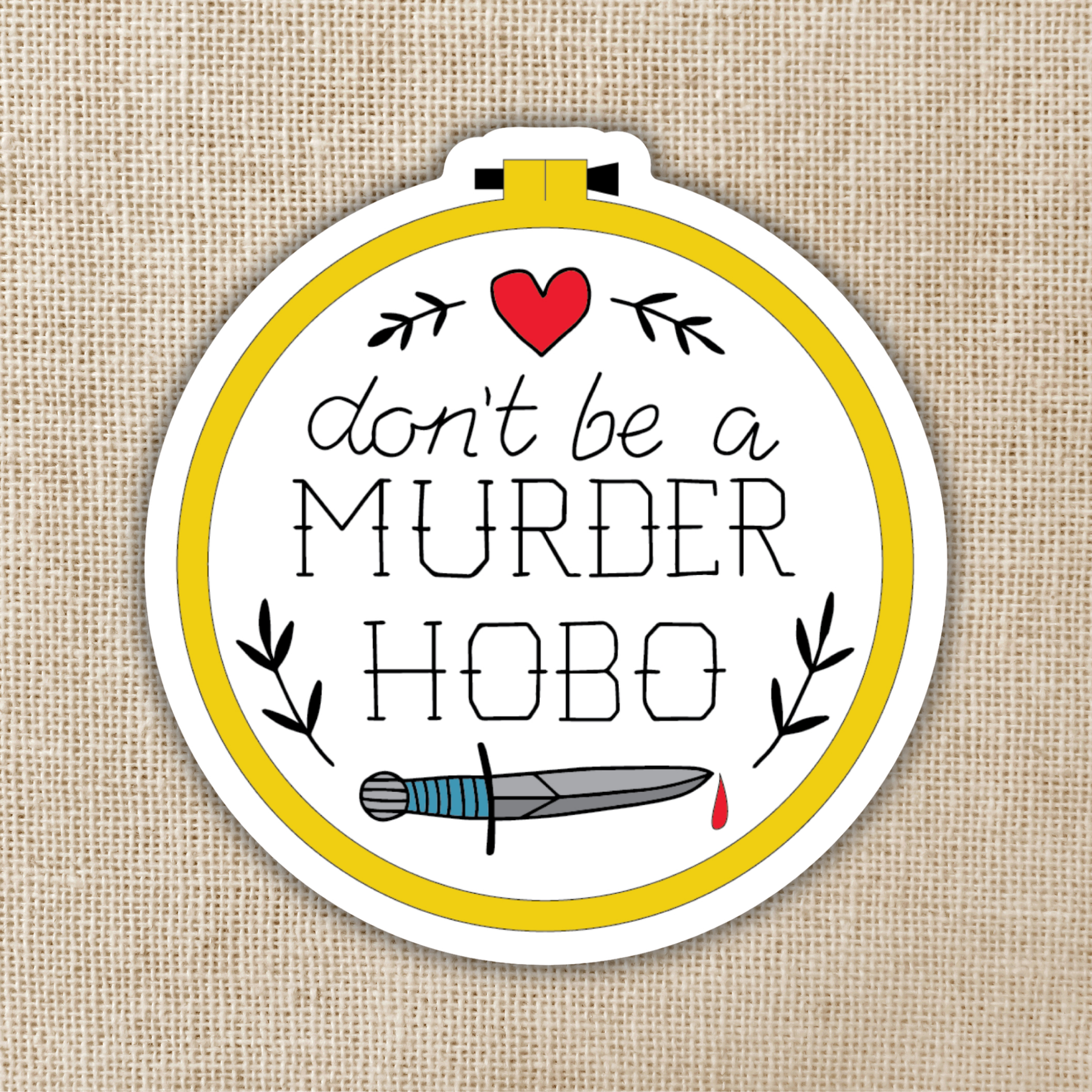 Do your fellow party members want to kill that shop keeper instead of just buying items at full price? There won’t be a town to save if you carry on like that! Live your best TTRPG life with this sticker, because everyone needs the reminder: don’t be a murder hobo.